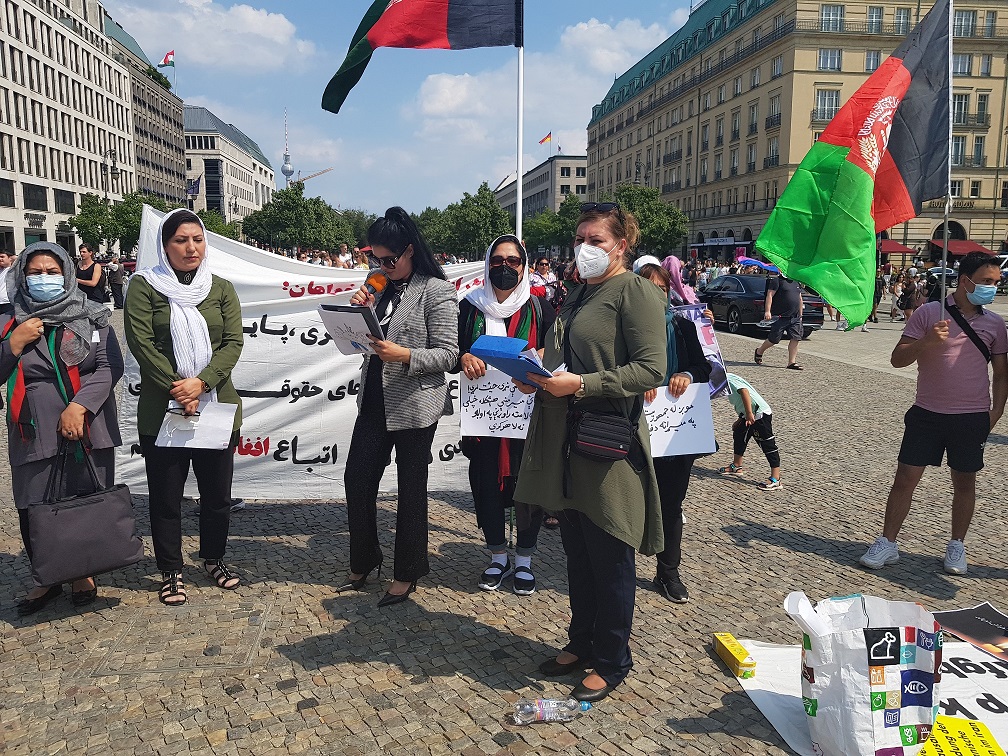 اجماع بینالمللی زنان افغانستان در خارج از کشور که متشکل از چندین نهاد اجتماعی، فرهنگی و فعالین مدنی مقیم کشورهای اروپایی است، امروز با گردهمایی در دروازه براندنبورگ برلین حمایت شان را از زنان افغانستان، نیروهای امنیتی و خیزشهای مردمی اعلام نمودند. سخرانان این گردهمایی از خروج غیرمسئولانه نیروهای امریکایی و ناتو از افغانستان انتقاد کردند و گفتند که پیشرفتهای بیستساله افغانستان در همه عرصهها را به ویژه آزادی زنان، حق کار و تحصیل زنان را تا حدودی مرهون همکاری امریکا و ناتو هستند، اما خروج غیر مسئولانه این نیروها این دستآوردها را با خطر روبرو ساخته اند. به باور سخنرانان این گردهمایی مردم افغانستان و به ویژه زنان افغانستان به عقب برنخواهند گشت و به هیچ قیمتی حاضر نیستند تا یک بار دیگر دوران سیاه طالبان را تجربه کنند.