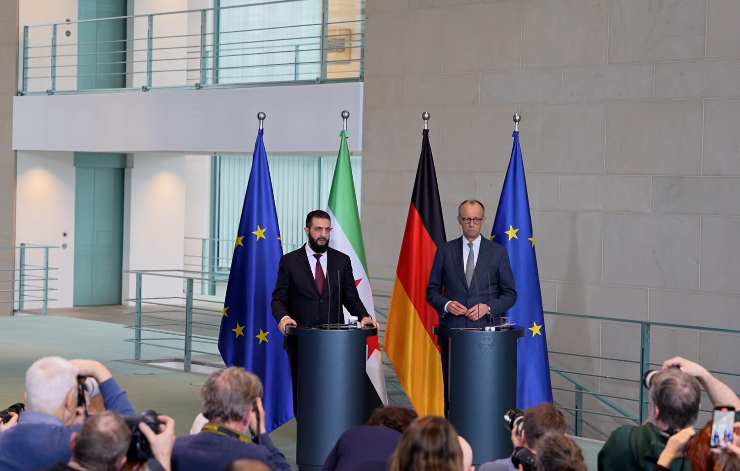 فریدریش مرتس پس از دیدار با الشرع اعلام کرد که دولت آلمان میخواهد بازگشت شهروندان سوری به کشورشان را سرعت بخشد. به گفته او، دو طرف برای هماهنگی این روند «کارگروه مشترکی» را تشکیل خواهند داد. مرتس همچنین از اختصاص حدود ۲۰۰ میلیون یورو کمک مالی آلمان به سوریه خبر داد؛ کمکی که قرار است در حوزههایی مانند زیرساخت آب و توسعه اقتصادی هزینه شود.