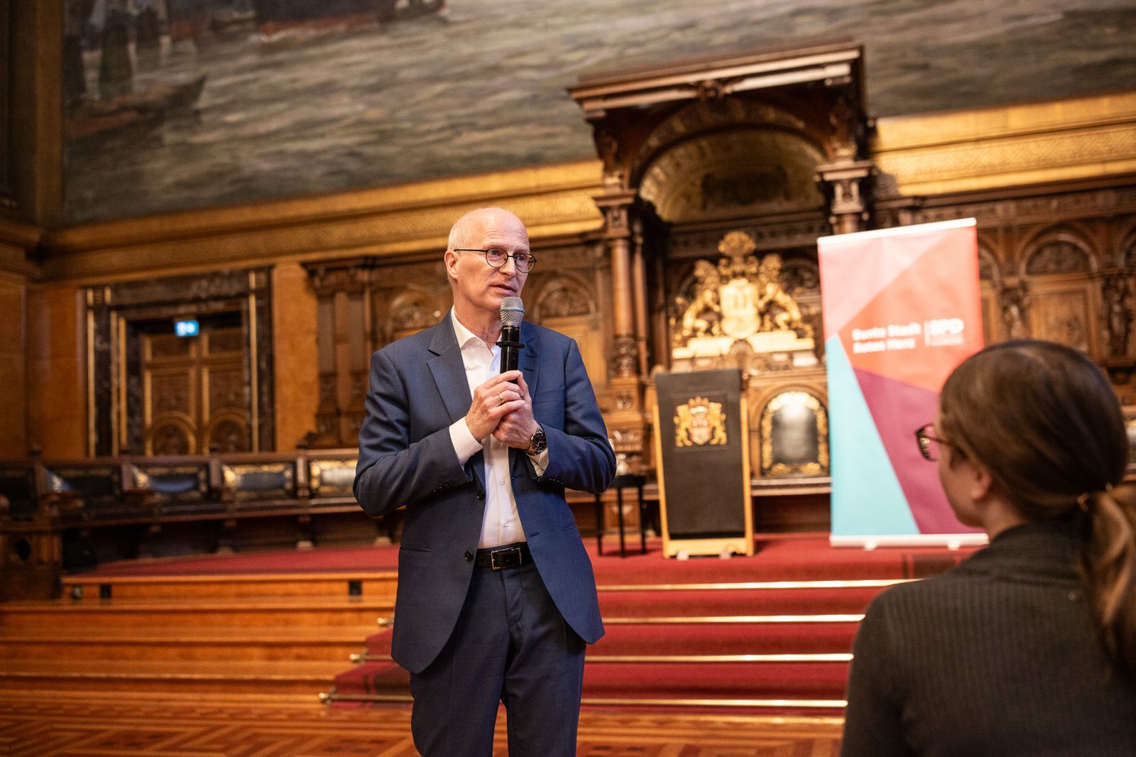 ما صبح با یک دیدار مشترک در ساختمان شهرداری و خوشامدگویی در تالار اصلی آغاز کردیم. سپس یک برنامه اکتشافی در داخل شهرداری برگزار شد که در آن دانشآموزان بهصورت مستقل با بخشهای مهم و روندهای کاری آشنا شدند. در ادامه، دیدارهایی با مسئولان سیاسی از جمله رئیس دولت ایالتی هامبورگ پیتر چنچر و رئیس پارلمان ایالتی کارولا فایت انجام شد.